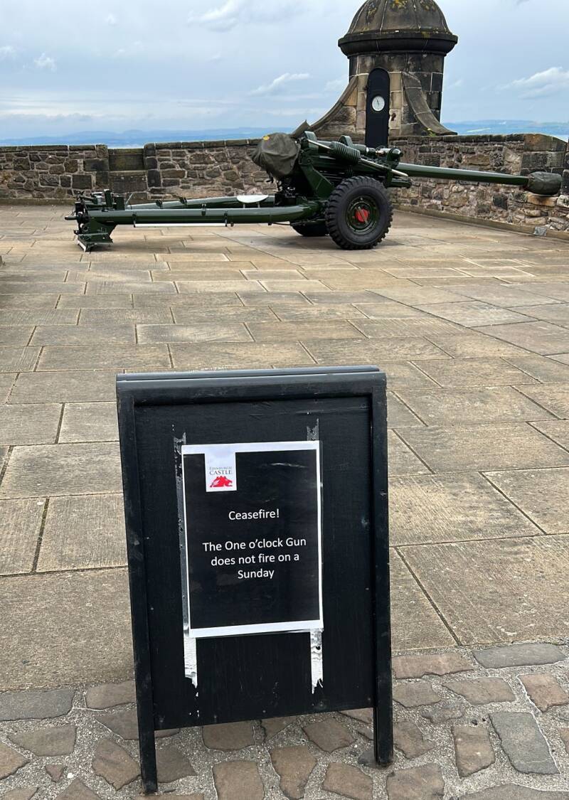 Zelfs het kanon hier rechts wordt niet op zondag afgeschoten, de zondagsrust wordt niet verstoort in Edinburgh.