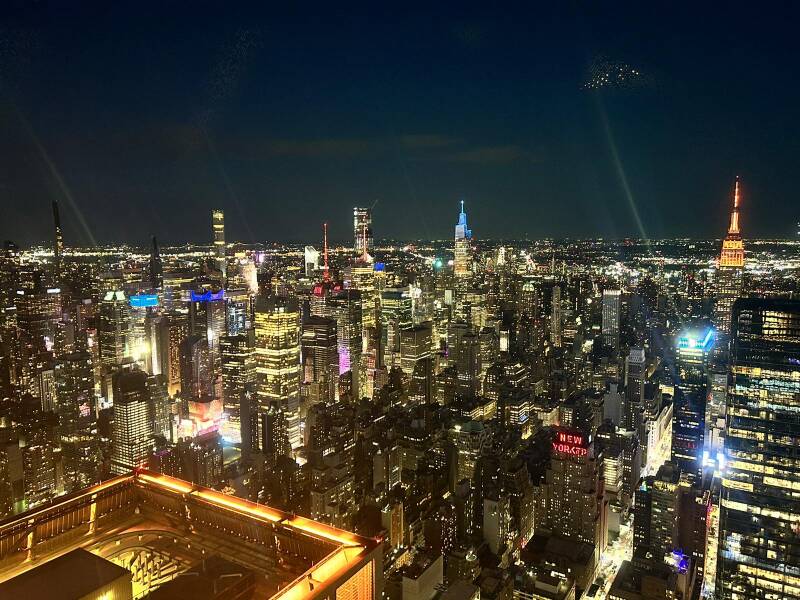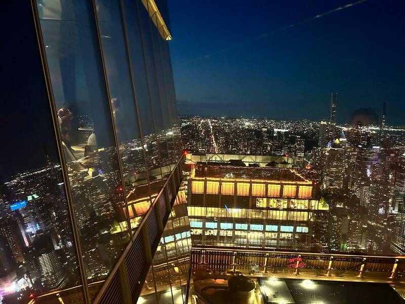Zo de auto is onderdak we gaan een wandelingetje maken naar de Edge met mooie vergezichten op een donker maar helder verlicht New York zie hieronder.