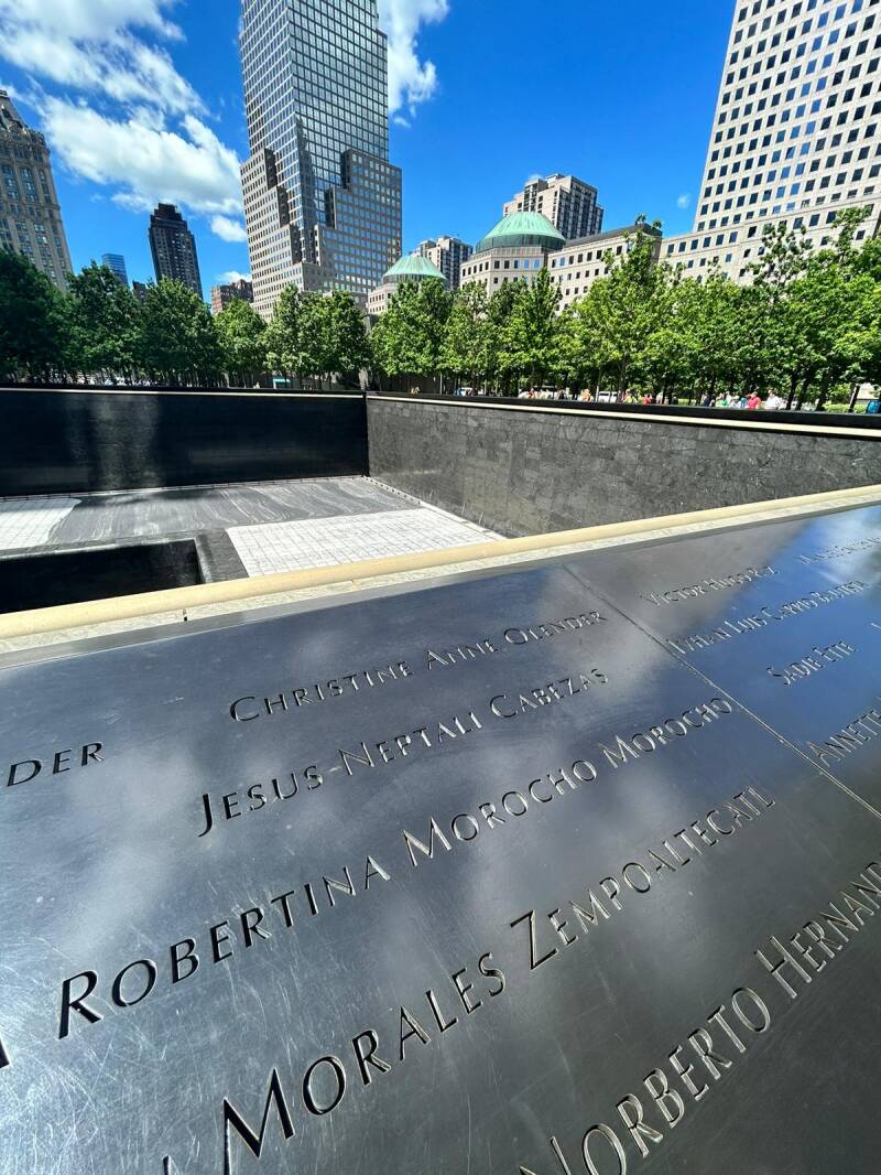Op de bovenste foto hier rechts is de Red Bull Arena te zien vanuit de parkeergarage, (onderste foto rechts) En waar kunnen we beter starten dan bij het monument van 9/11.