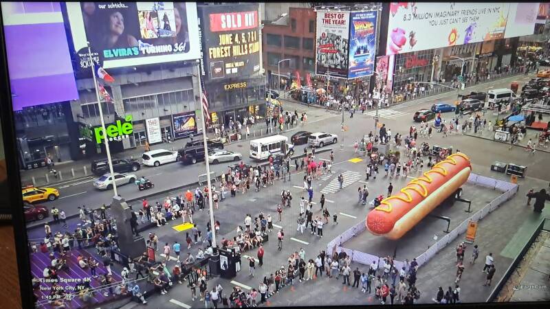 Je zal het geloven of niet maar bij de pijl zie je onze reiziger Joey, geregeld in samenwerking met zijn vader Bas in Eindhoven, op de webcam van Times Square